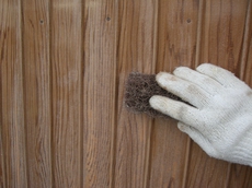 | バイオ洗浄液を作ります。 | バイオの力で汚れを根こそぎ落とします。 | 門扉の汚れもしっかり落とします。 |