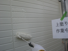 | 施工前の正面から見た外観です。 | 施工前の後ろから見た外観です。 | 手で触ると塗料が付いてきます。塗り替えのサインです。 |