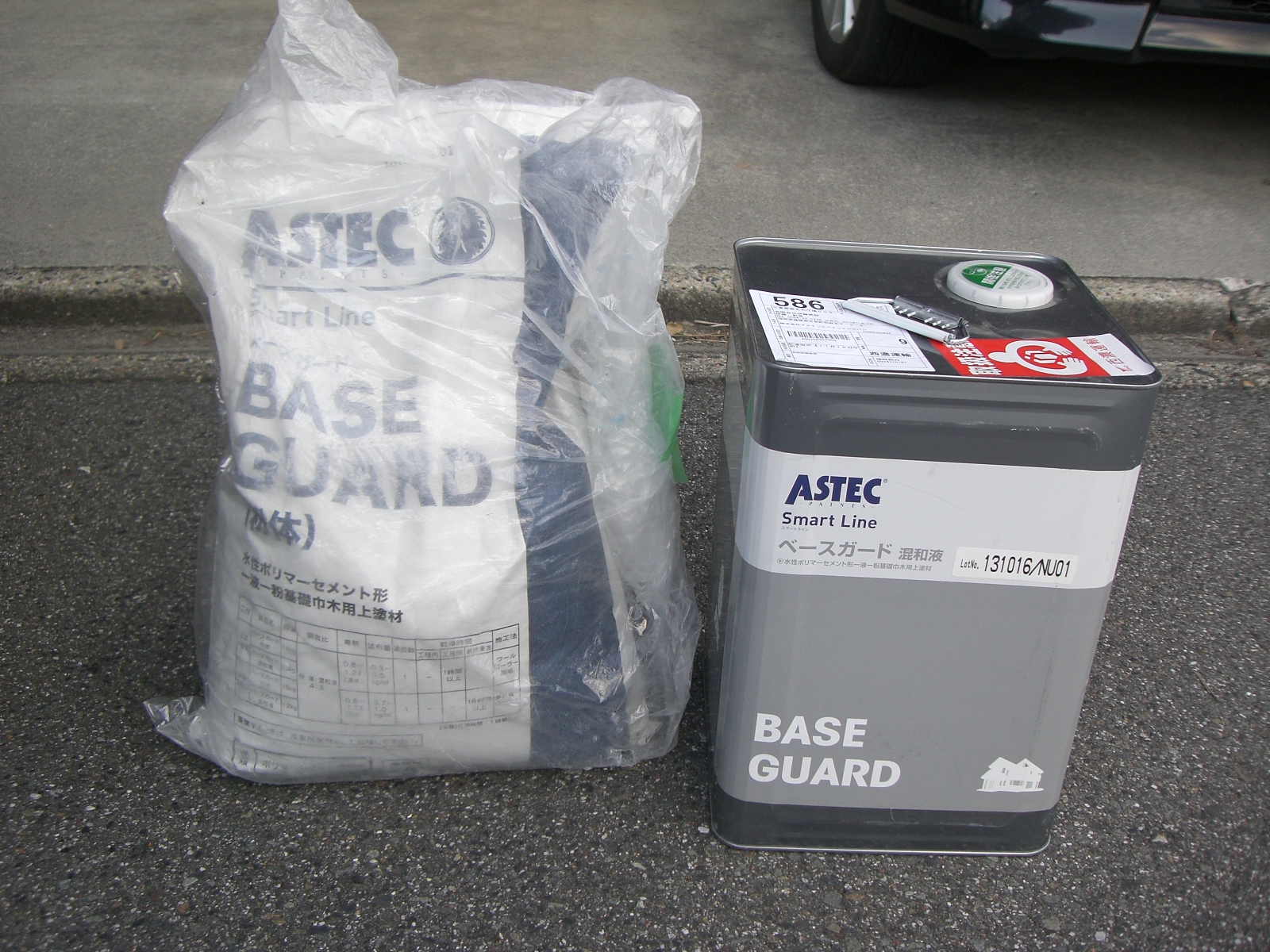 | 古くなったコーキングを取り除きます。 | コーキングを取り除き、養生をします。 | 次にプライマー(接着剤)を塗ります。 |