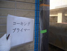 | 古くなったコーキングを取り除きます。 | コーキングを取り除き、養生をします。 | プライマー(接着剤)を塗ります。 |