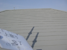 | 屋根上塗り(3回目)作業中です。 | 屋根上塗り(3回目)完了です 。 | 屋根上塗り(3回目)完了です。 |