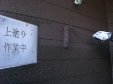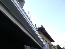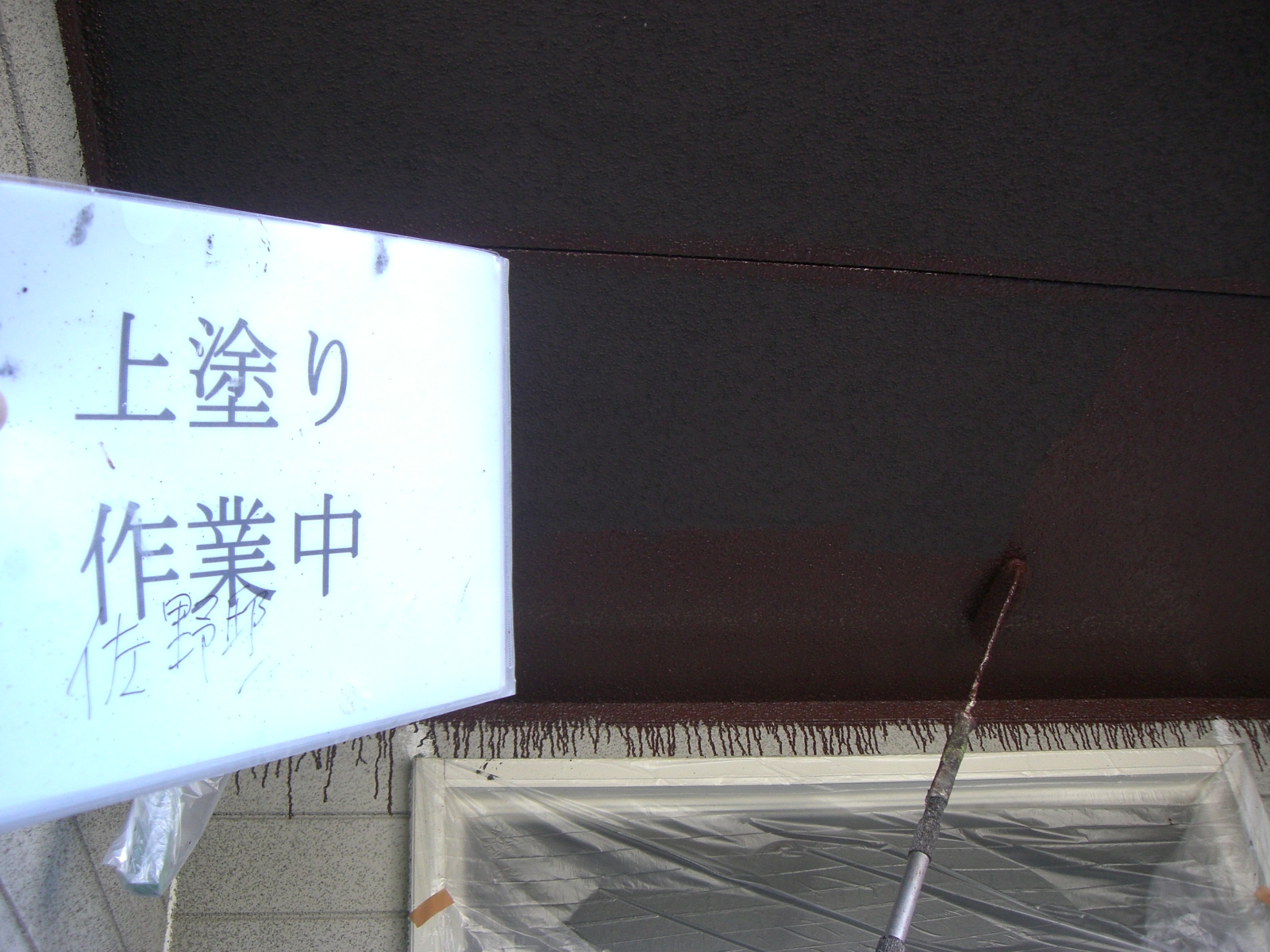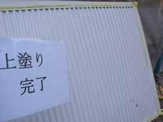 | 通気を良くするためタスペーサーを差し込みます。 | 断熱塗料「ガイナ」を塗ります。 | 屋根中塗り(2回目)です。 |