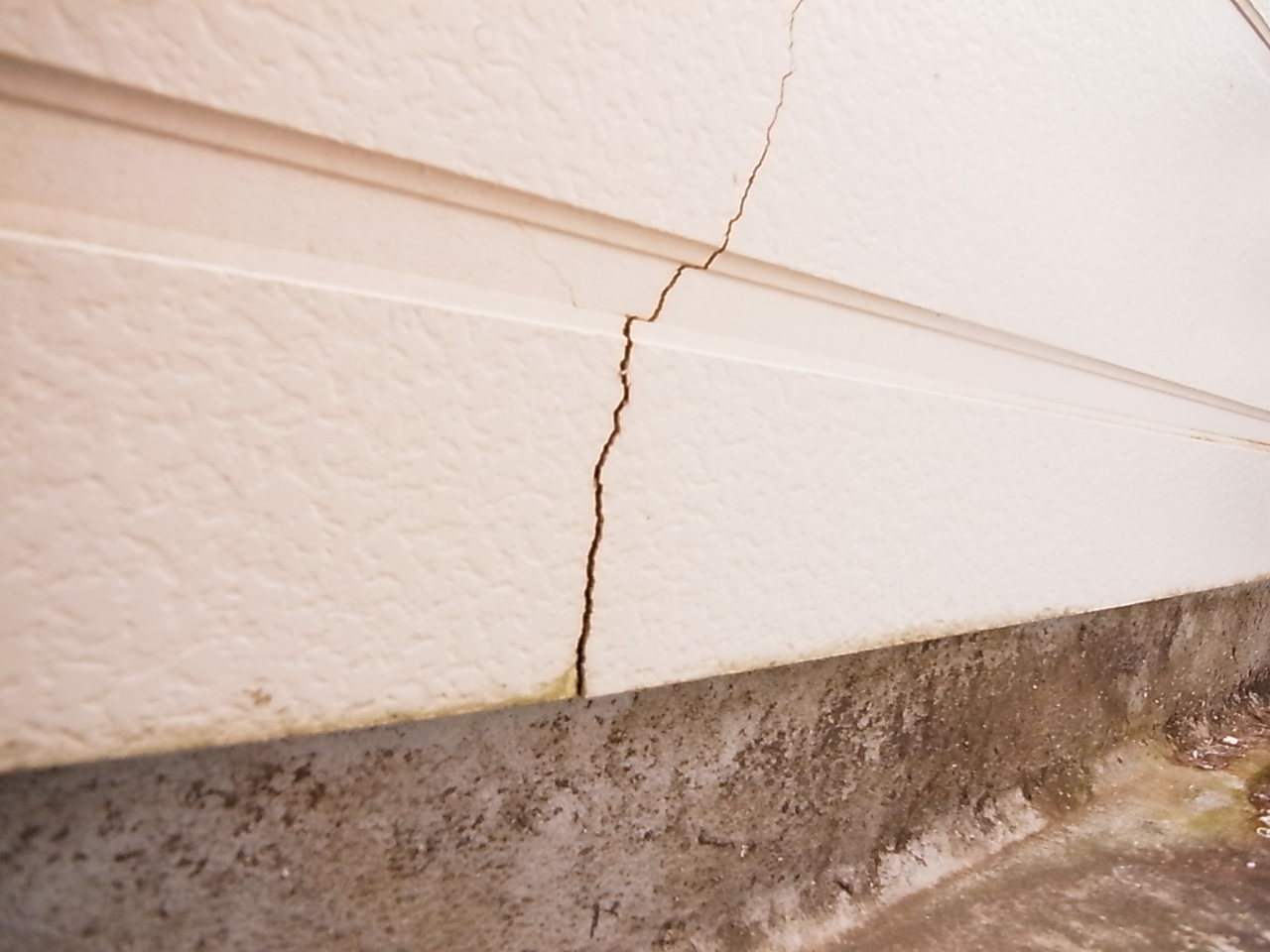 | ベランダ。FRP防水が一部割れています | 外壁。塗料がかなり剥げています | ベランダ内側の外壁。ヒビが入っています |