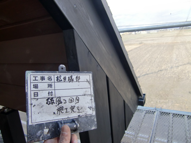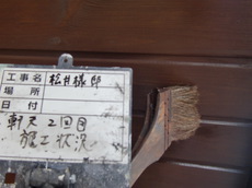 | 破風2回目施工完了 | 軒天2回目施工完了 | 使用塗料:屋外用木材保護塗料205N |