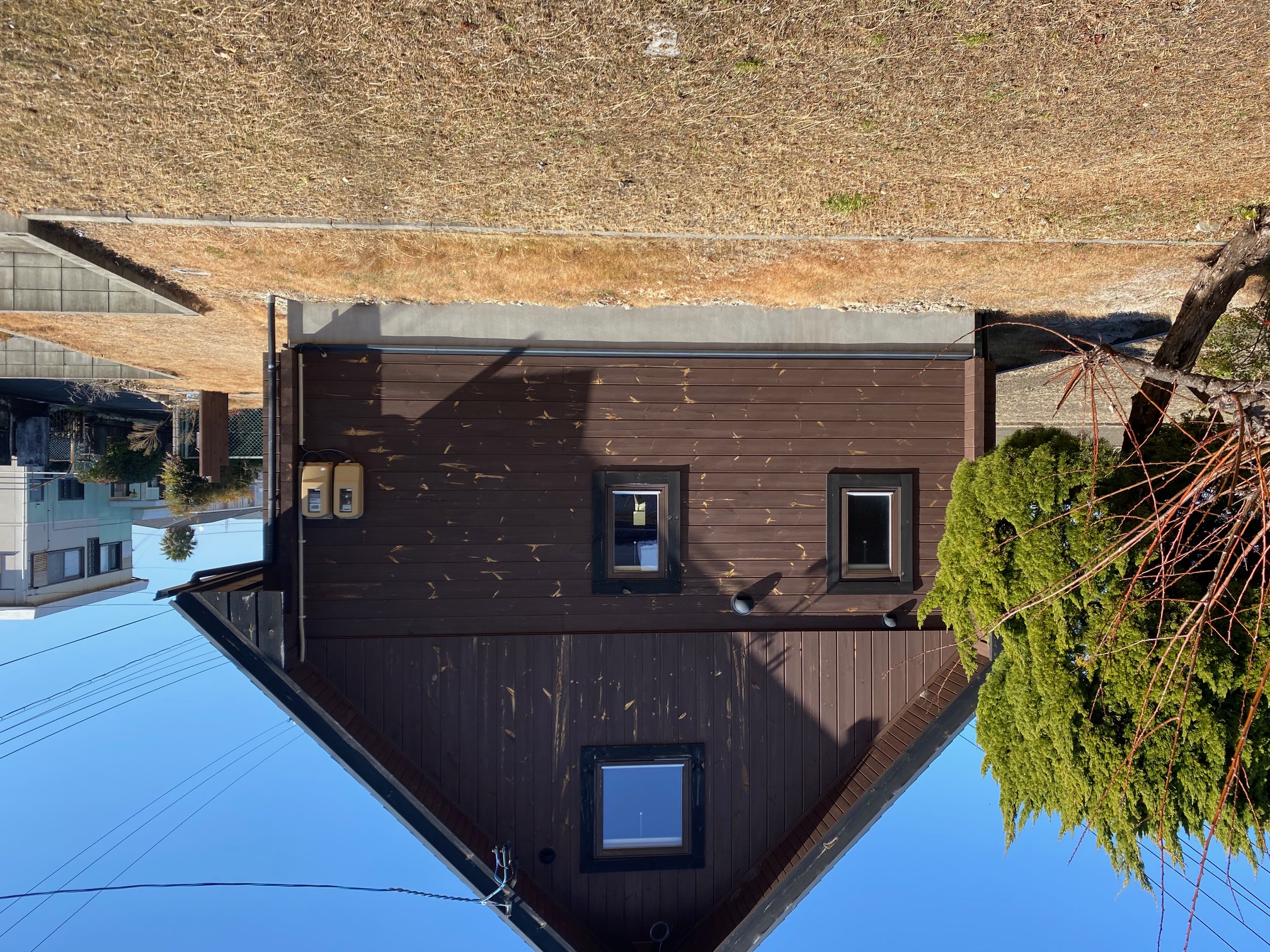 ところどころ、白くなっているのは、木が成長して塗料が薄くなっています。このタイプは5年に1度の塗装が必要になります |