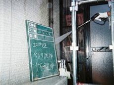 | 足場を作っています。 | 養生が終わりました。 | 屋根の水洗い |